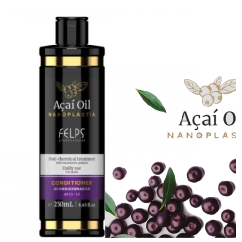 - Acai oil Conditioner replenishes the vitamins and lipids that hair needs after chemical procedures, reducing damaged hair. Provides nourishing, hydration, and prolongs the smoothing effect. Promotes hair alignment, frizz-free, softness, and shine.
