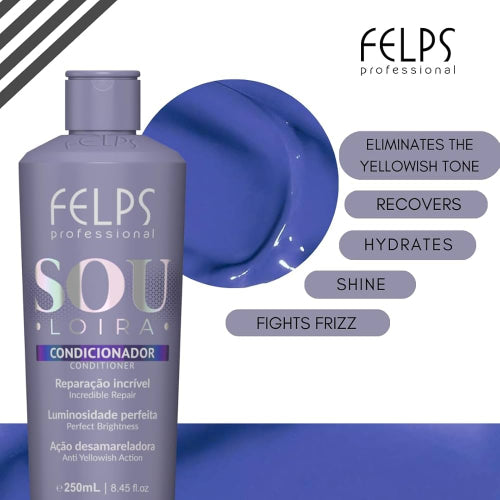 - The Sou Loira Conditioner eliminates the yellowish tone of the hair, rescuing the pure and healthy blonde of the hair
